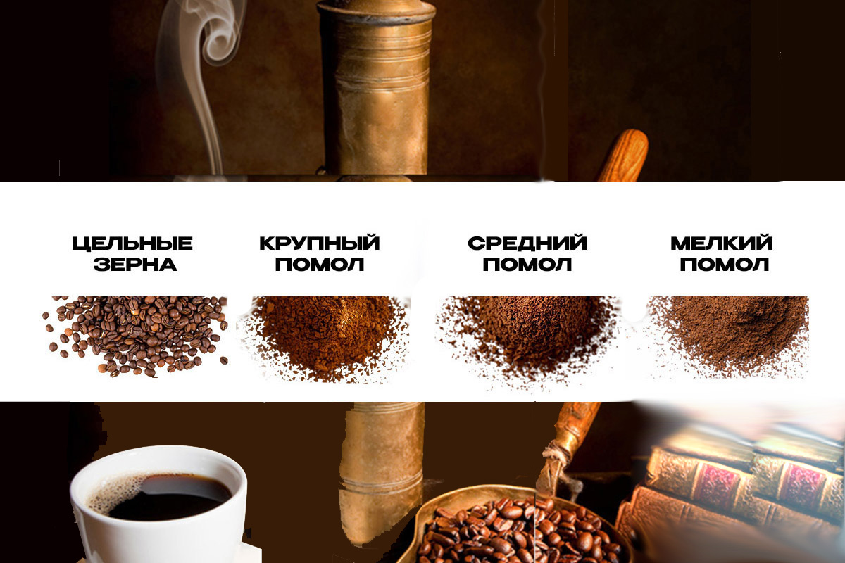 Степени помола и их влияние на вкус и аромат кофе зависят от степени измельчения зерен. Основные виды помола: